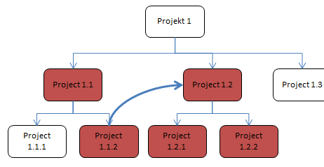 Wenn also Projekt 1.1.2 unter Projekt 1.2 gehängt wird, werden folgende Projekte gesperrt: