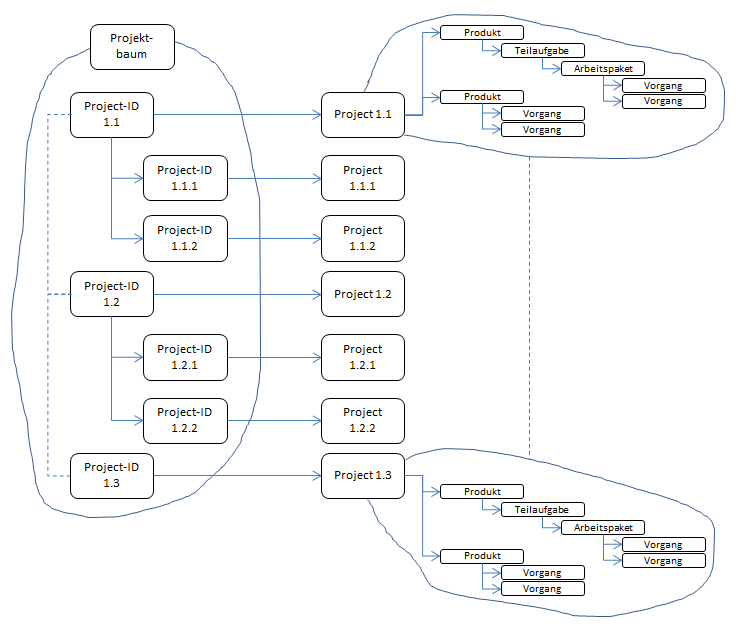 Wenn ein Projekt seine Teilelemente kennt, und separate Referenzen auf Teilprojekte und auf Projektvorgänge hält, dann kann mit absoluter Sicherheit verhindert werden, dass Teilprojekte und Projektvorgänge auf einer Ebene vermischt werden.