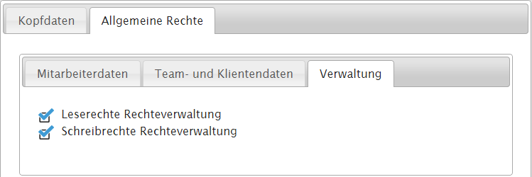 Damit eine Rolle, die z.B. lediglich Klienten anlegen soll, nicht aber die Fragebögen einsehen darf, wird getrennt zwischen dem Recht auf
